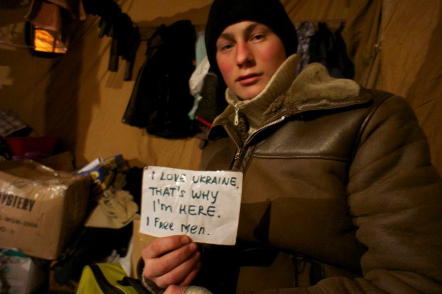 Inside one of the hundreds of tents dotted around Independence Square. This man is from the region of Carpathia (600km to the west of Kiev) and has been living in this tent with his friends for 8 weeks.