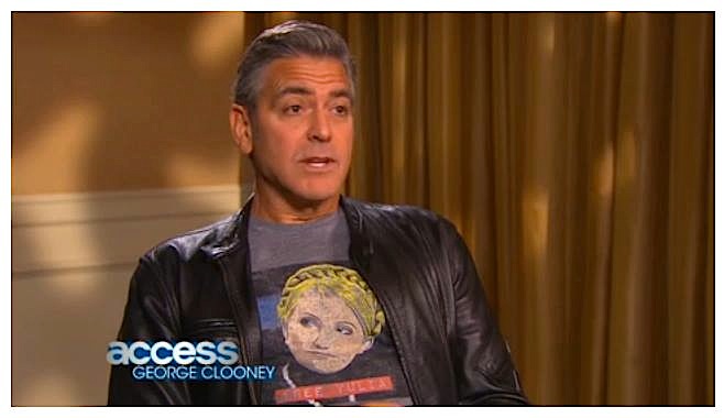 George Clooney wore a FREE YULIA Tymoshenko t-shirt during an interview on Access Hollywood, in which he discussed his latest film, “The Monuments Men.” Helping to keep global attention on Ukraine.