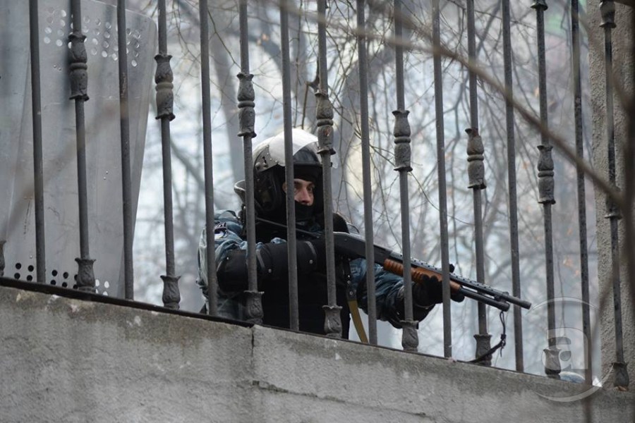 Berkut sniper shooting people with rubber bullets, Kiev Dynamo Stadium