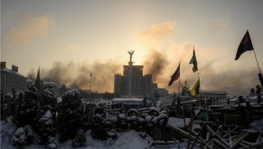 Ukraine is when the soldiers of internal armed forces are grateful that they are blocked by protestors as they do not have to go and fight their own people; instead they help the protesters to bring logs to keep fires going…