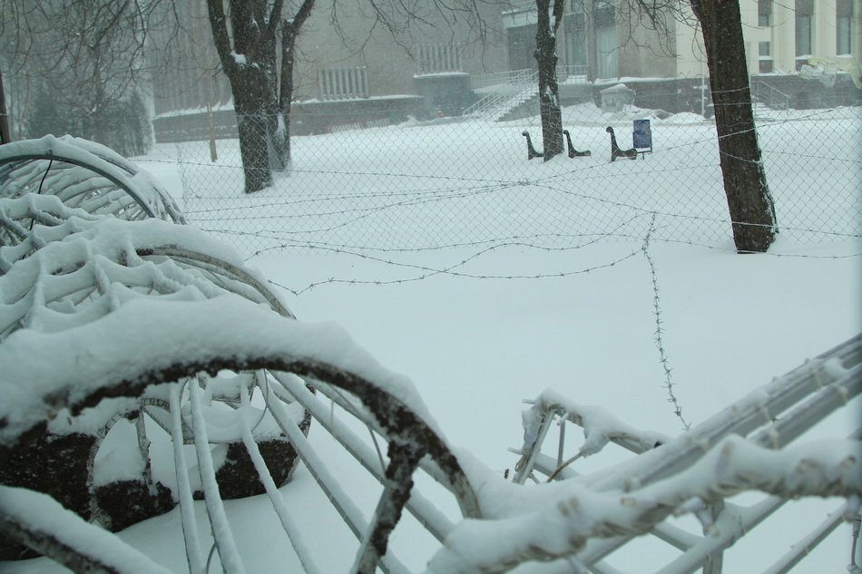 12:26. Before entering the building of Kyiv and Cherkasy Regional State Administration began to flood rinks, to complicate access to the building. This was pointed out by lawmaker Mykola Tomenko and noted that in front of the Kyiv Regional State Administration ice covered even the steps on which people are injured.