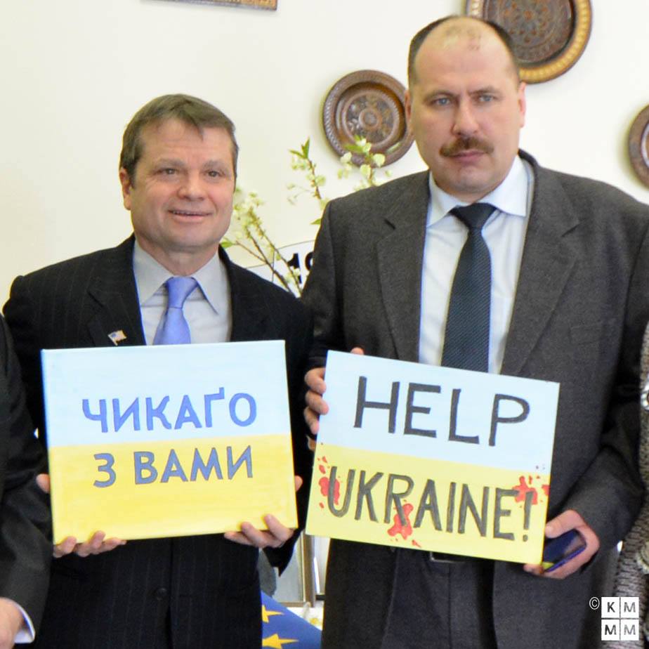 CHICAGO, IL US Congressman Mike Quigley (L) & Deputy Commander of the Maidan Oleh Medunicia (R) Parliamentary Deputy from Sumy, Ukraine.