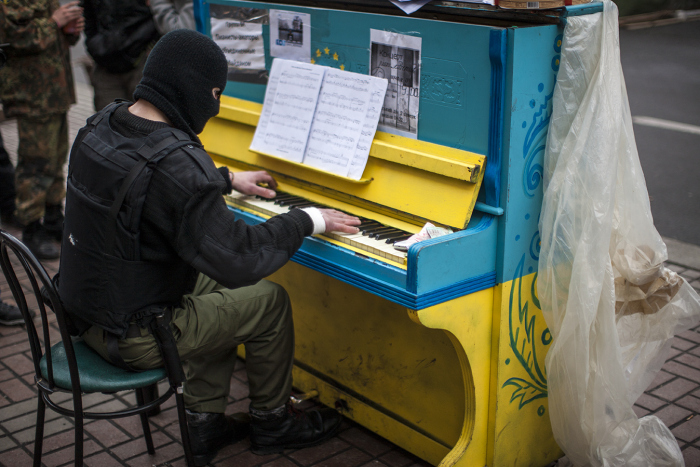 “It is the spirit of the revolution,” the Pianist-Extremist, reportedly in his 20s, told Reuters this past weekend. “It is the spirit of the revolution.” He said he’s among the thousands protesting for the sake of their country, “not for money or violence. I want to show the people of Europe what is happening in Ukraine,” the pianist told Reuters. “The authorities here are criminals, and we will see them punished.”