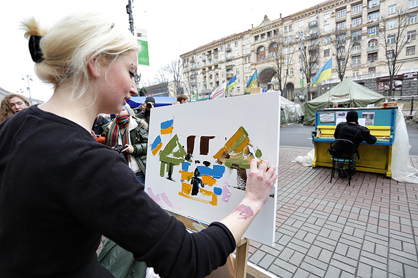 An artist paints Pianist-Extremist as he plays piano. © Anastasia Vlasova