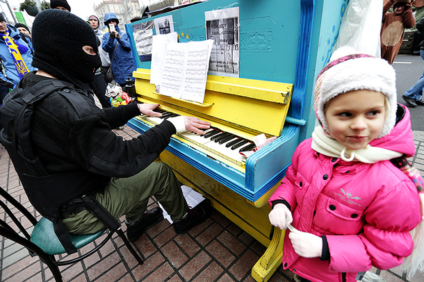 About 30 people gathered in front of Kyiv City Council to listen to the piano concert on Feb. 14.