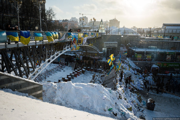 Ukraine’s Euromaidan protests are protected by multi-level barricades built from sacks filled with snow. Photo from zyalt.livejournal.com, used with permission