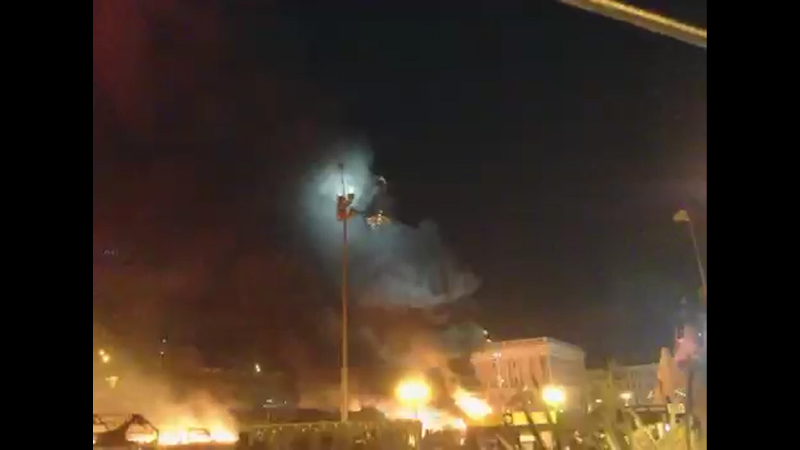 Es fligen Molotovs Richtung Polizeilinien. Die Polizei schießt mit Granaten.