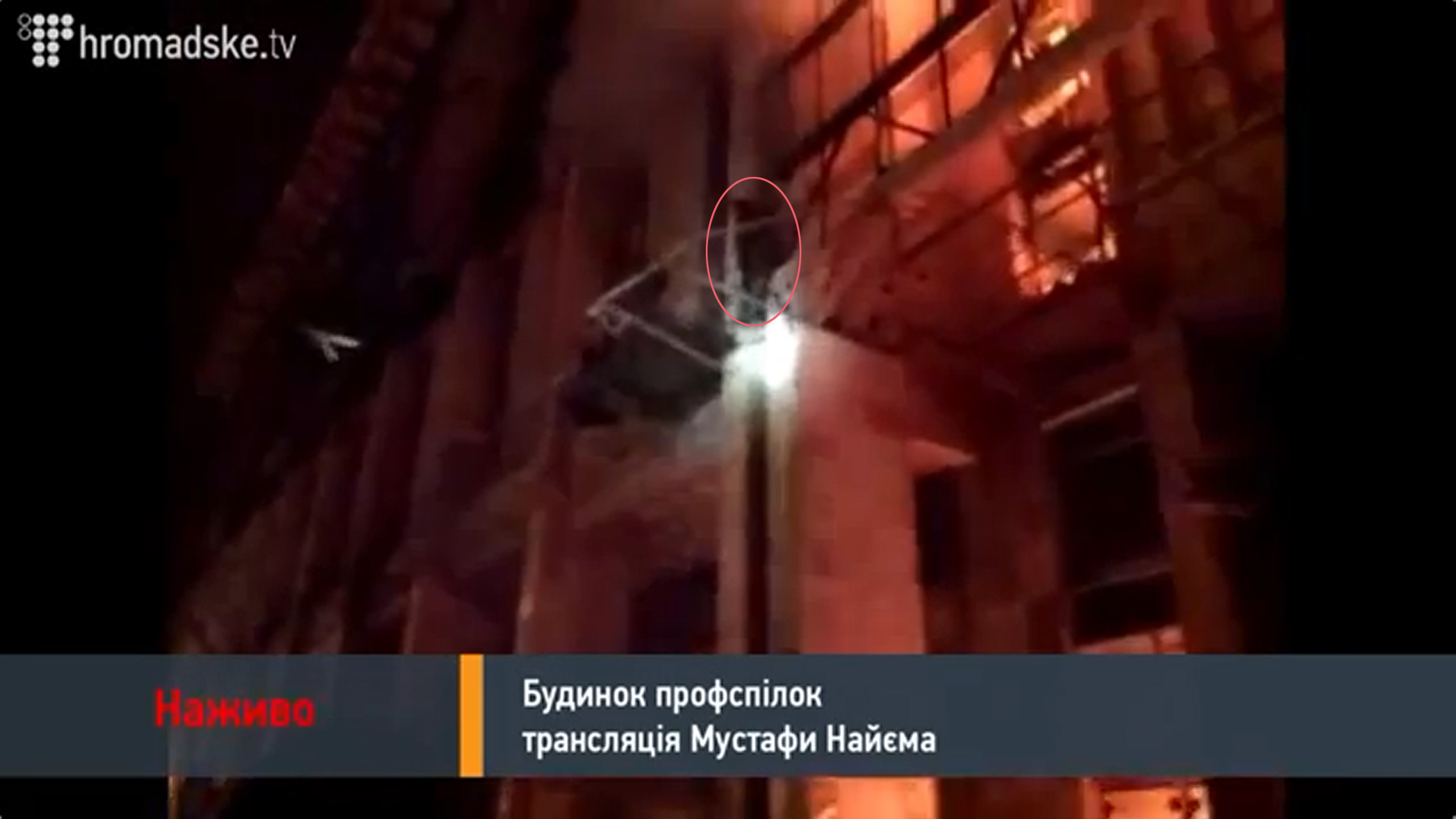 Berkut warf Granaten gezielt auch auf die Menschen_ um sie zu verletzen. Einem Demonstranten wurde die Hand von der Explosion abgerissen, einem anderen explodierte Granate direkt unter den Füßen. Ein Mann klettert hoch und versucht eine Frau zu retten. Sie ist rausgekommen. Sie kletterten runter. Die Frau wurde gerettet. Aber im Gebäude sind noch Menschen.