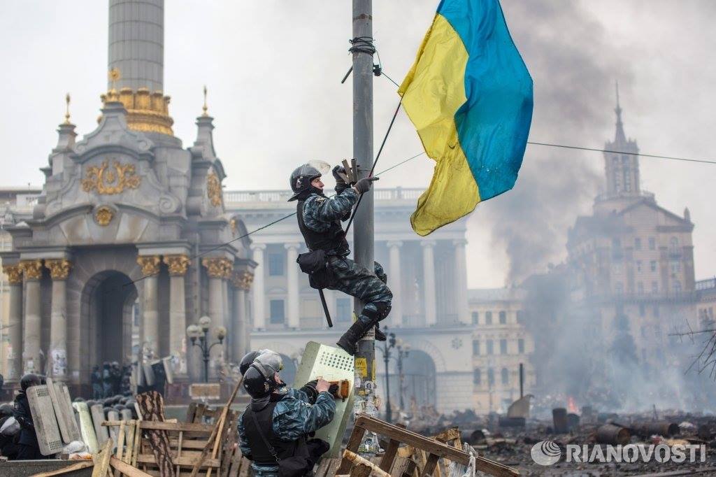 Berkut officers, who live and eat at the expense of Ukrainian taxpayers, tore down the state flag of Ukraine at the main square of the Ukrainian capital. No one can say better than Alexander Roitburd: “If the state flag is a banner of resistance, if the state anthem is a song of protest, then the country is occupied.”