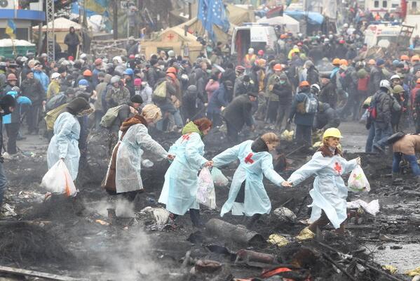 The coordinator of the Maidan medical service reported more than 100 people killed today. Over 500 people were hospitalized.
