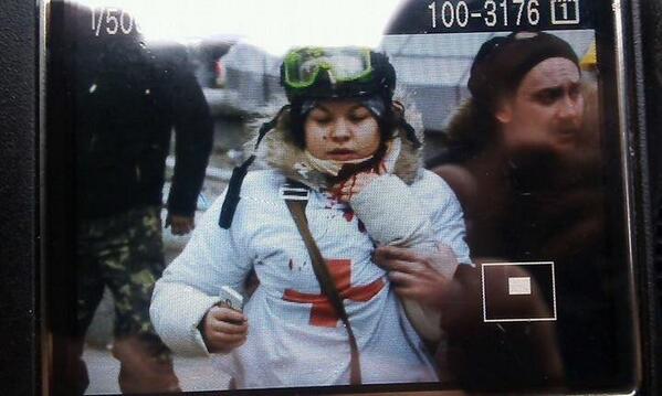 A female volunteer of Maidan’s Medical Corps with a gunshot wound, reports Espreso.TV