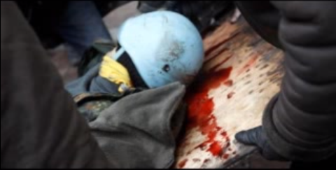 A big blue spot was seen among all this red against a white background… This was a military helmet in the blue color of the UN. Covered by blood, it had a bullet hole on the left side at the level of the temple.