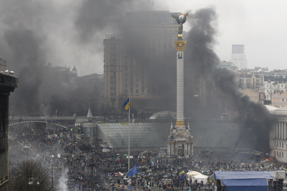 Yesterday, as the bloodiest day of clashes between thousands of demonstrators and heavily-armed riot police in the heart of Kyiv’s Maidan drew to a close with protesters unbowed, President Viktor Yanukovych told European foreign ministers that he would be open to early elections if that would restore peace. Last night the EU finally voted unanimously to impose sanctions against persons responsible for the violence in Ukraine, freezing their assets and denying visas.