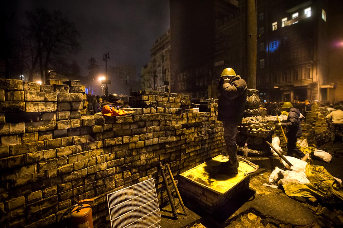 My brother went to attack and the crowed ran after him. They [Berkut and interior forces] fought back, the guys on the hill also pressed them. There are many victims, even more than has been estimated so far. Many people from Right Sector died on that hill, and many died on the front lines near the first barricade on Instytutska Street. Everyone involved would tell you this, not just my brother. They are estimating that about 100 people were killed that morning. Afghan vets, who we sat and talked to last night by the barrels.