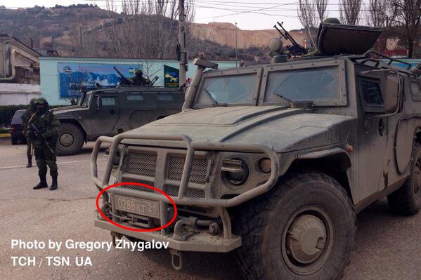 All is definite in this case: we see an off-road vehicle GAZ-2975, called TIGR, costing $60K each and provided by the manufacturer to the Russian army only. Moreover, on the military-type number plate we see the code 21 referring to the North Caucasus Military District of the Russian Federation.