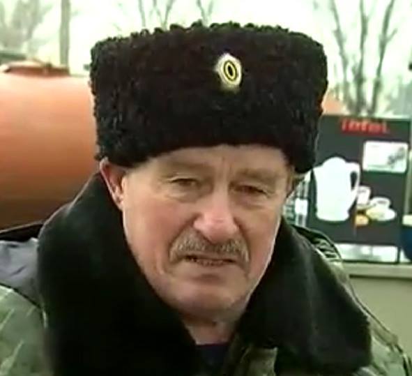 The man in the sheepskin hat is Valentyn Veselov, one of the deputies of former Chieftain Savotin, former head of staff at the Novorossiysk City Cossack Society. He was involved in numerous scandals related to insubordination to the district chieftain, poor knowledge of the Army Regulation, and lack of adherence to cossack traditions, including subordination. Veselov’s former superior, ex-chieftain Savotin, was the first ever chieftain to be expelled from Kuban cossack ranks. Veselov was quick to grass him up at cossack meetings, admitting to instances of bad document management, incompetent to the point of forgery.