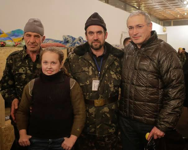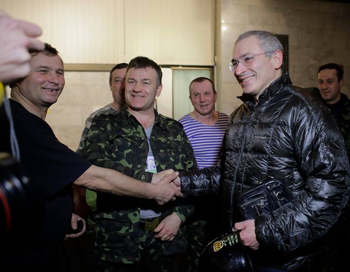 Former Russian oligarch Mikhail Khodorkovsky visited protesters today on Kyiv’s Maidan (Independence Square), the center of three months of Ukrainian anti-government demonstrations and unrest which saw fierce battles between pro-governement riot police forces and protesters, leaving over 100 dead, and resulting in a change to an interim government, with the former President of Ukraine abnegating responsibilities and fleeing the country to Russia.