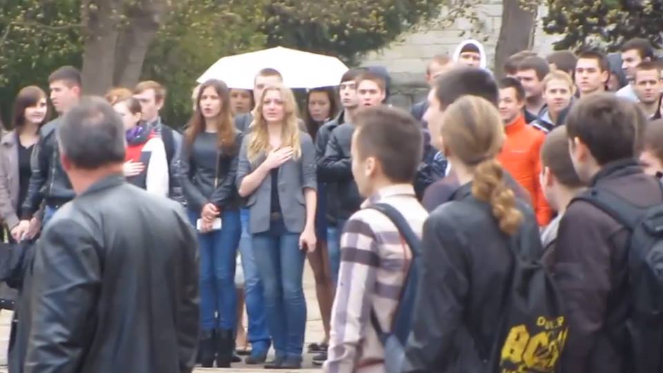 On Friday, March 28, in Sevastopol National University of Nuclear Energy and Industry a ceremony of lowering the national flag of Ukraine and the rise of the flag of Russia was held. During the removal of the national flag of Ukraine a significant portion of the students started singing the national anthem of Ukraine and continued singing it without music after it was hurriedly off soundtrack. During the further procedure of lifting the Russian flag and playing the national anthem of the Russian Federation, dozens of students ostentatiously left the parade ground.