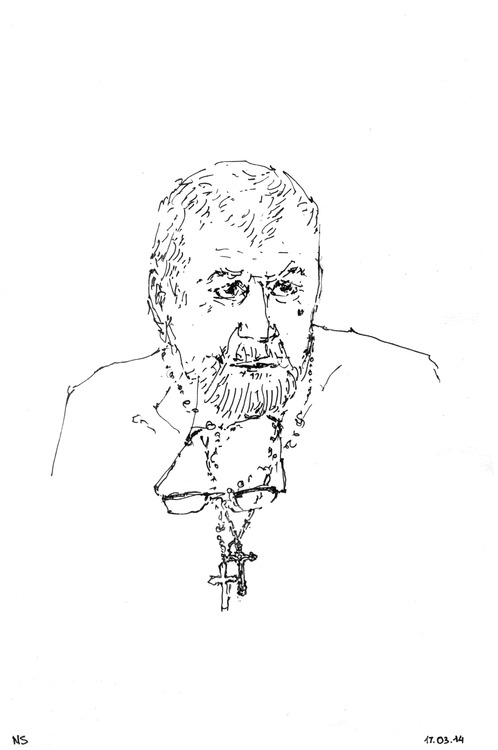 The Trade Unions House was burnt down, but I wanted to sleep. I went to the conservatory, started knocking on the door, and they were yelling at me: “Grandpa, what are you doing?” I responded: “I want to sleep.” And they said: “War is everywhere.” Why should I fight, I need to sleep.