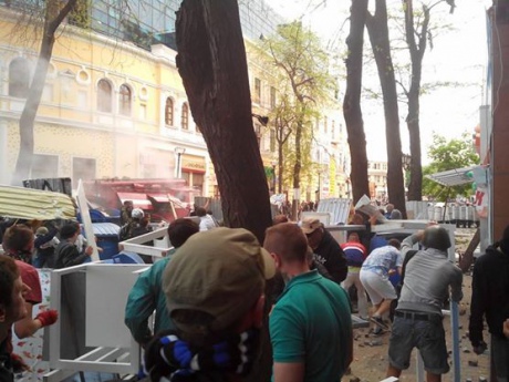 Wie zuvor berichtet wurde, dauern die Unruhen seit 15:00 Uhr an, als die Antimaidan-Teilnehmer versuchten den Marsch für die Einheit der Ukraine gewaltsam zu stoppen. Nach dem Stand von 21 Uhr sind, laut Polizei, 4 Menschen gestorben, 15 kamen ins Krankenhaus mit unterschiedlich schweren Verletzungen.