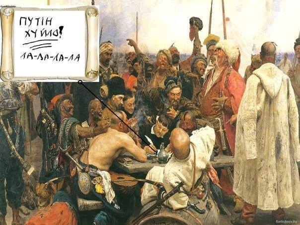 over Ilia Repin’s The Zaporizhian Kozaks Write A Letter to the Turkish Sultan (1880-91)