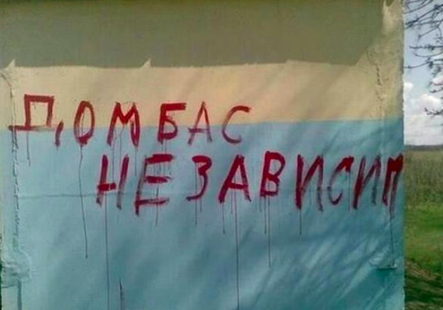 Graffiti: “Dombas is independent” Donbas is misspelled here, presumably by foreign insurgents who don’t know how to spell local city names properly. It reads like: “Dumbass” this way.
