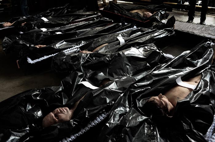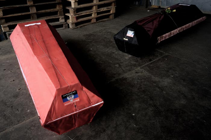 Three colleagues and I followed the truck with the coffins from the morgue, and we turned out to be the only ones for whom this story was interesting and important. Our interest aroused respect among the DPR activists. They allowed us to be present while they loaded the bodies and let us photograph the bodies of the dead.