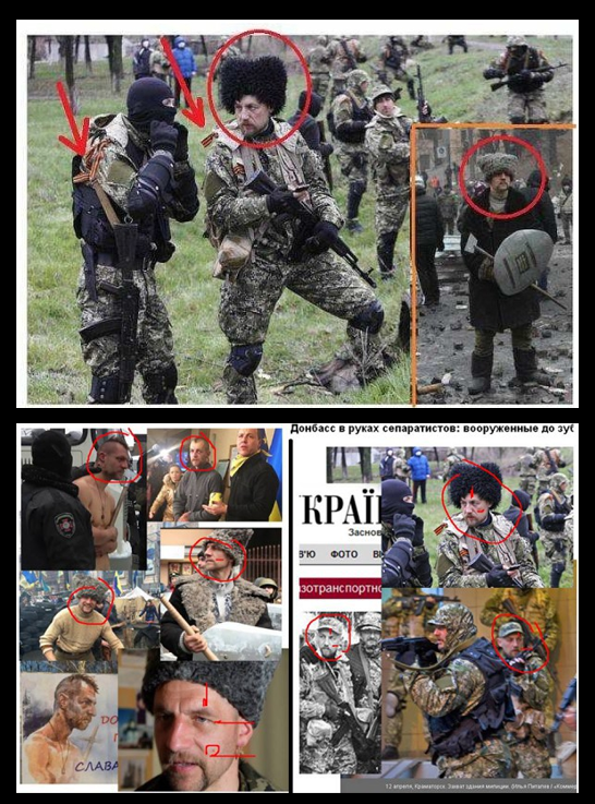 Separatists are actively spreading a lie that Mykhailo Havrylyuk, a Kozak from Maidan, turned separatist and is wreaking havoc in Donbas now. They even took the time to compile some “photo evidence.” On closer inspection, they miscalculated the haircut, the separatist who turns out to be one Yevheniy Ponomaryov, also active on social networks (Ponomaryov’s vKontakte profile), is practically bald, whereas Havrylyuk has a Cossack oseledets/chupryna. The subversive also doesnt have a deep wrinkle line like Havrylyuk. Perhaps the “detectives” who falsely identified him as Havrylyuk, got confused by the hat.