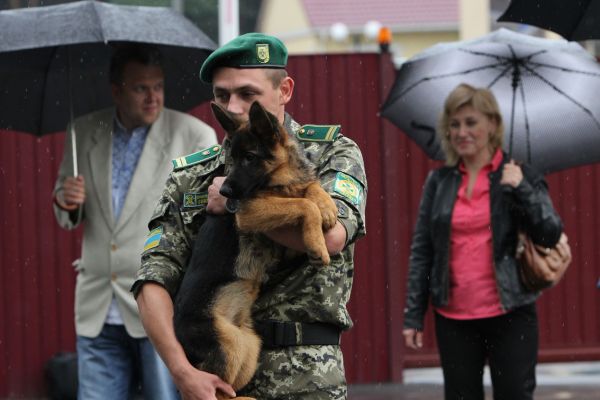Dog trainers gave German Shepherd puppies to border guards. [PHOTO]