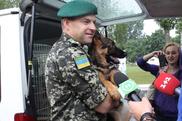 Dog trainers gave German Shepherd puppies to border guards. [PHOTO]