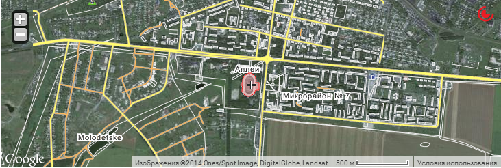 On the map, the building the terrorists are shooting at (it is visible behind them in the video), is a small rectangle adjacent to the oval of the stadium. And what is that object just behind it? Can you see? These are the highrise communities #7 and Zhuravlivka, and also the Eastern neighborhood and residential homes. You can also open another map at this link and see for yourself.