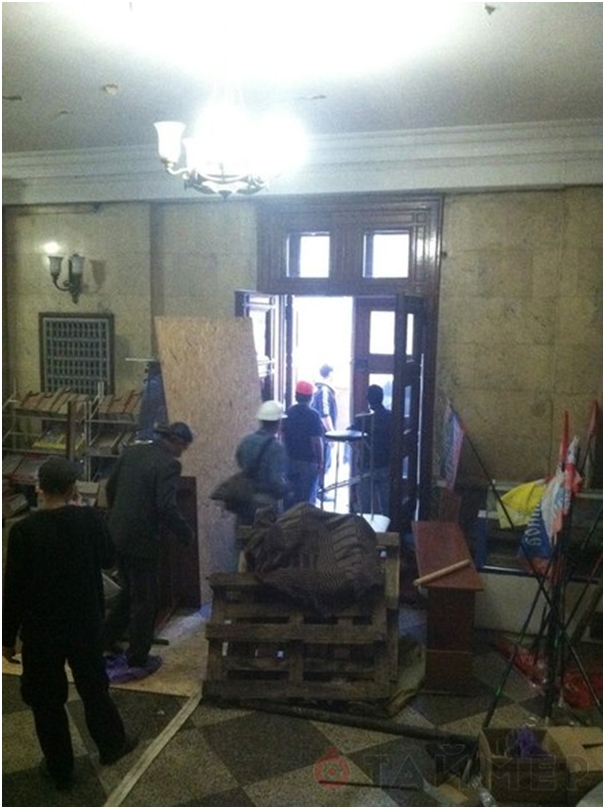 1. Nach Wladislaw Balinskij aus der 2.-Mai-Gruppe zeigen die Beweise, dass einige der Aktivisten der pro-Föderalismus-Bewegung gut vorbereitet waren, um sich im Gebäude zu verbarrikadieren und das Gewerkschaftshaus zu verteidigen.