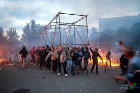 • die Pro-Föderalismus Aktivisten in das Gewerkschaftshaus flohen, um sich vor einer aufgebrachten Menge von pro-Einheits-“Radikalen” zu schützen, die Zelte der Föderalisten verbrannt hatten;