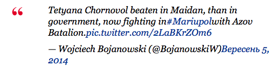 – he wrote under the photo, which shows Tetyana Chornovol in a flak jacket and a helmet.