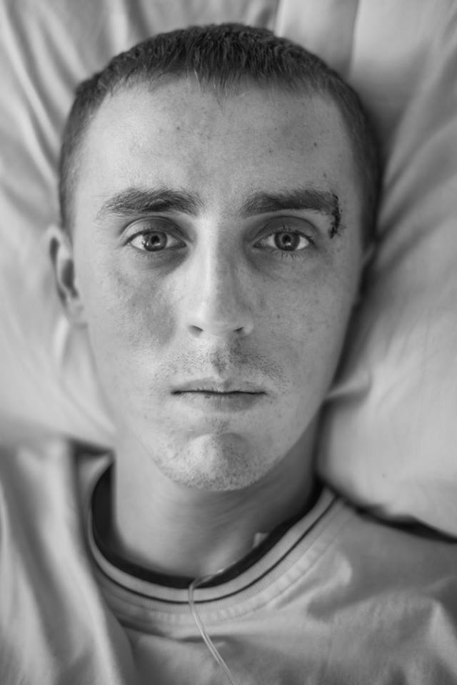 For several days in early August, the artist talked with patients of the surgical department of the Central Military Clinical Hospital in Kyiv who came there from the front with serious injuries. Polataiko had 11 photo-portraits taken and recorded the stories of the people who have been in the inferno of war. They are very diverse people: volunteers, mobilized and contract soldiers, veterans of the Afghanistan War. They belong to different generations and went to the war zone from different regions of Ukraine. They have different attitudes to war and their experiences. For some, war rushed into their regular course of life and broke their personal, comfortable world. For others it simply is hard work that must be done as well as possible. However, all of them admit that “life is valued quite differently” now, and the belief that “we are fighting for our land” helped them to stand firm in the most difficult moments. Speaking with the wounded soldiers isn’t easy. Most of their answers are short and specific. But their voices and facial expressions tell much more than the most detailed interview.