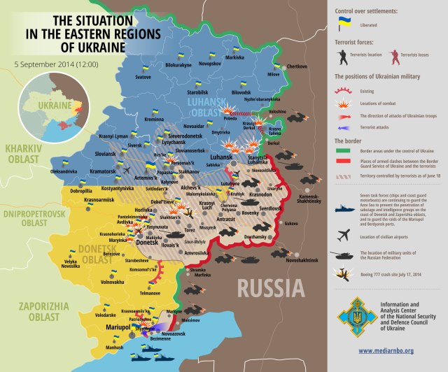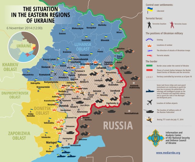 This one ( https://upload.wikimedia.org/wikipedia/commons/7/70/East_Ukraine_conflict.svg ) seems a little bit too pessimistic, but allows to avoid being dragged into unnecessary overenthusiastic emotions while assessing the situation.