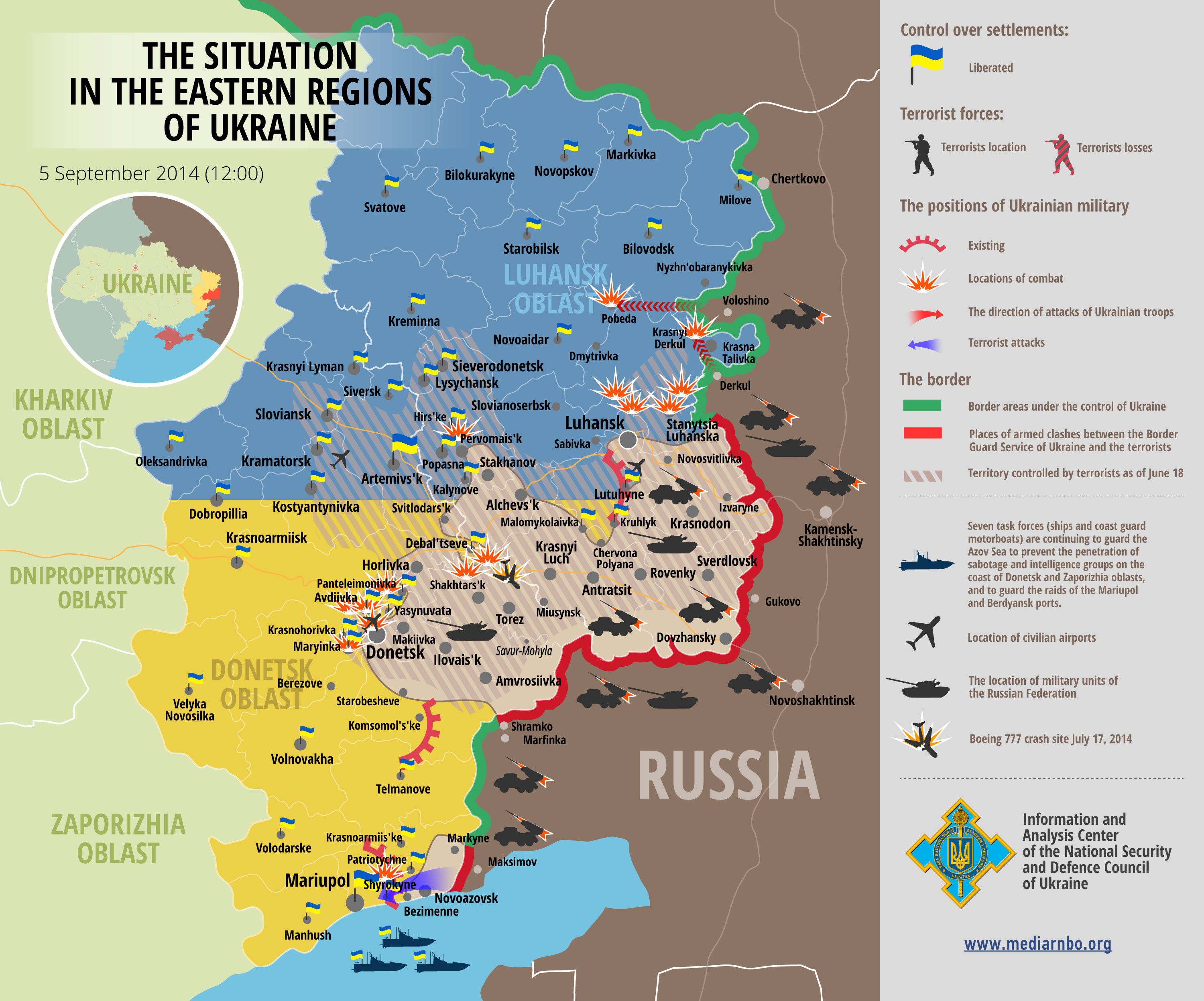 NSDC [National Security and Defense Council of Ukraine]: “No one is talking about an open attack by insurgents. It is obvious that there are not enough troops on the territory of Ukraine for the large-scale attack. According to the art of war, the attacker must be four or five times stronger than those who defend themselves. The terrorists don’t have this; the Ukrainian military have the advantage of force.”