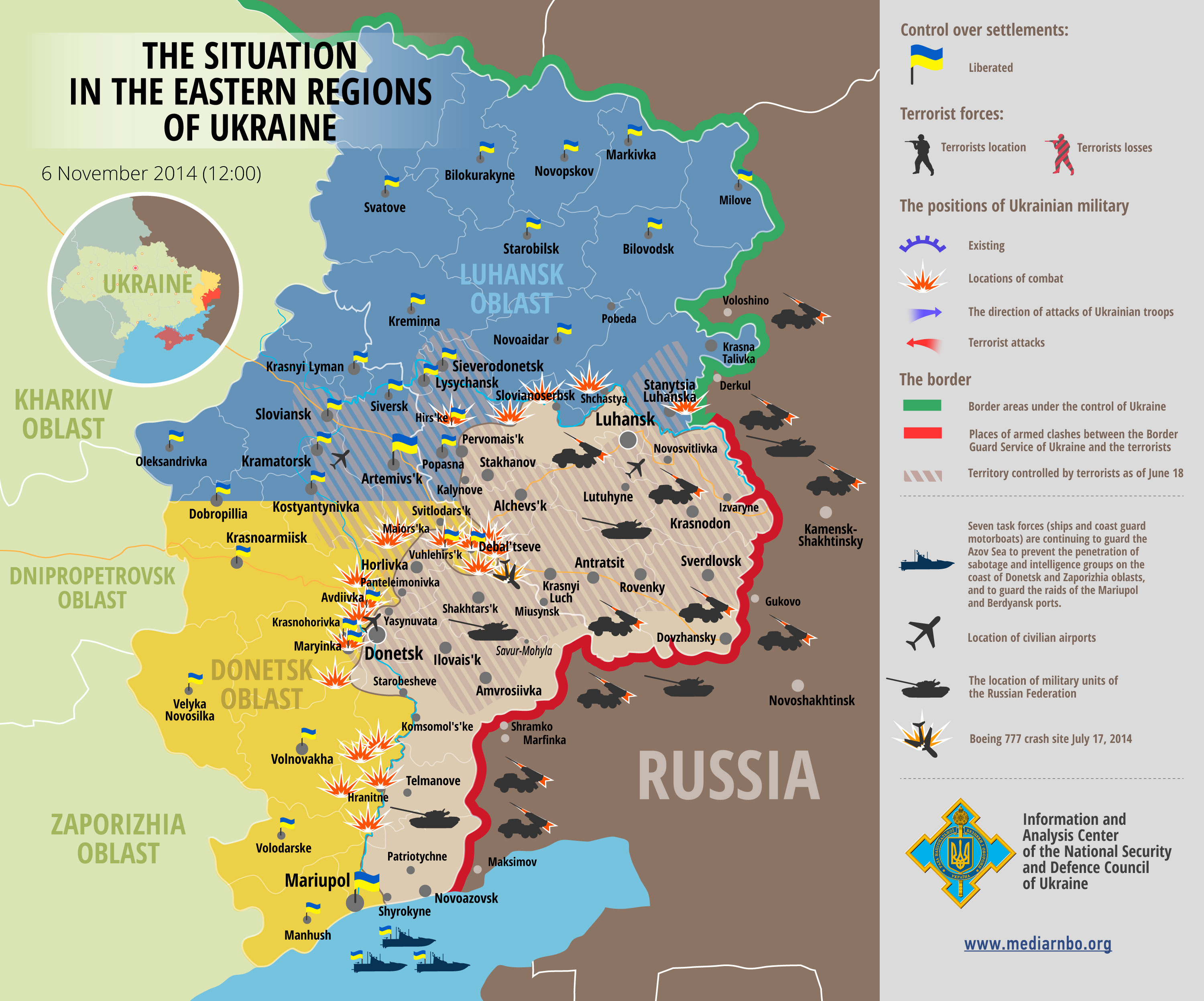 In particular, our checkpoints and strongholds in the area of Debaltseve have undergone attacks by insurgents 6 times, fire strikes were deposited 4 times over Trokhizbenka, and the positions of ATO forces near the settlements of Avdiivka, Nikishyne, Crimea were fired on 3 times.