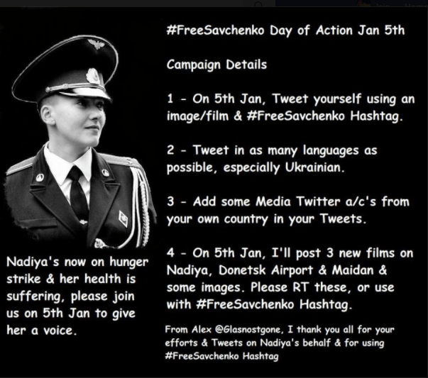 On January 5th, @Glasnostgone is calling a twitter day of action to ‪#‎FreeSavchenko‬. These are the instructions for the campaign: