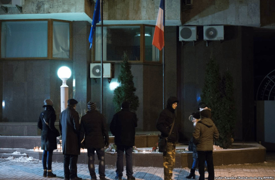 Kyivans support the French victims who died during attack on Charlie Hebdo