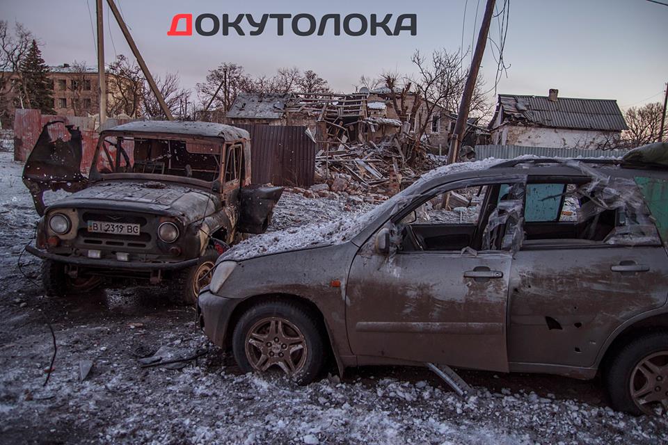 The next day, as I wander through Pisky, I hear everyone’s story of how katsap [Russian] shelling helped them out. One hit shook up a pile of frozen coal; another, made a crater perfect for burning trash in. Some are talking about planting trees in the craters, and others say that next summer, the mortars will be great for harvesting potatoes. There are no wounded or dead. Thank God!