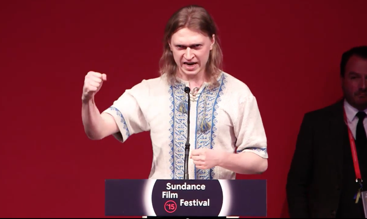 Cinematographer Artem Ryzhykov’s fist-pumping ‘Slava Ukraini’ (Glory to Ukraine) at the end of his Sundance Film Festival 2015 acceptance speech.
