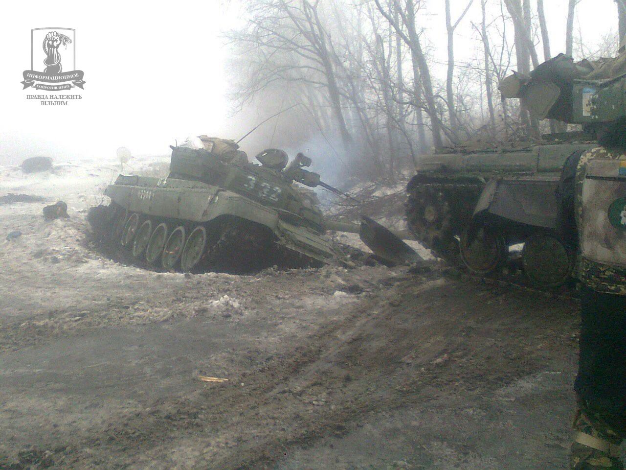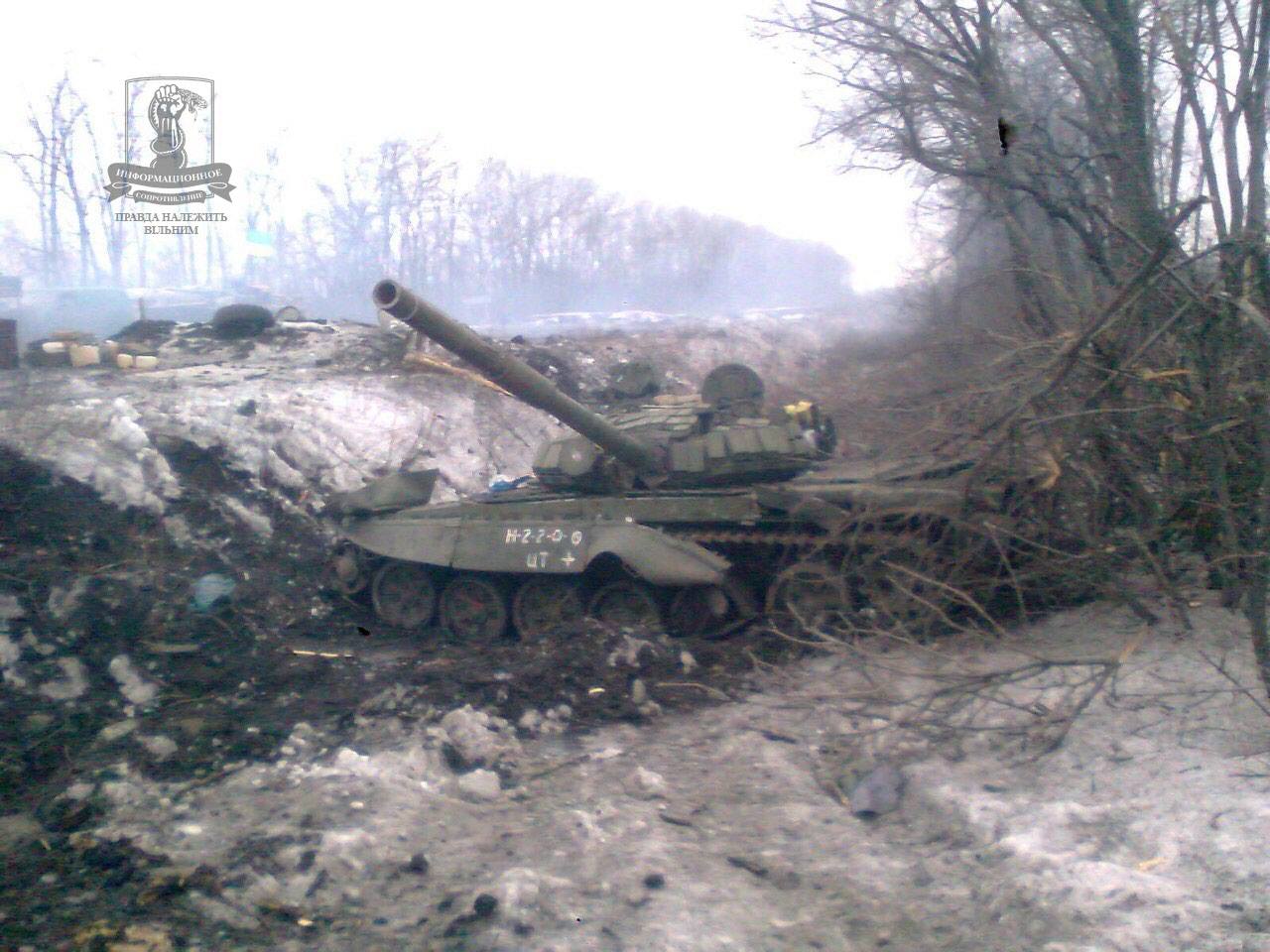 As already reported by the Information Resistance group, a consolidated tank unit of 16 tanks that was previously transferred to the vicinity of Debaltseve (which arrived from the area of Krasnyi Luch) after taking part in a three-day combat, has been practically defeated (7 tanks were hit in the first day of the offensive, 4 tanks were lost during strikes by Ukrainian artillery during the two days that followed, 3 more tanks became inoperable for other reasons.