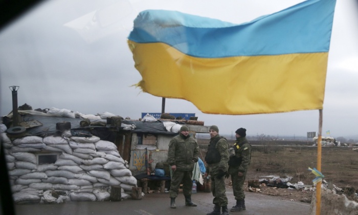Ukrainian soldiers guard a check point near Debaltseve, which is home to a strategic railway junction that lies between the separatist-held cities of Luhansk and Donetsk.