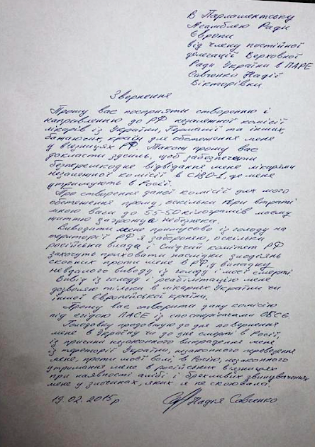 By Nadiya Savchenko, via her Lawyer Nikolai Polozov