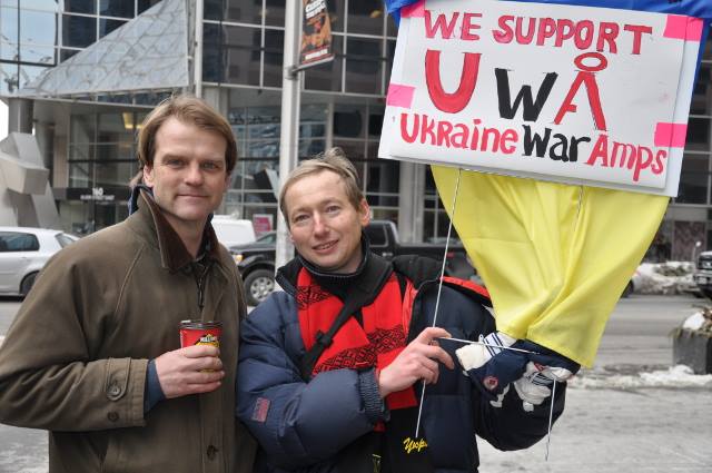 Gene Berezovski (R) with Canadian Federal Immigration Minister Chris Alexander (L) at March 1, 2015 rally for Ukraine at the Russian Embassy in Toronto