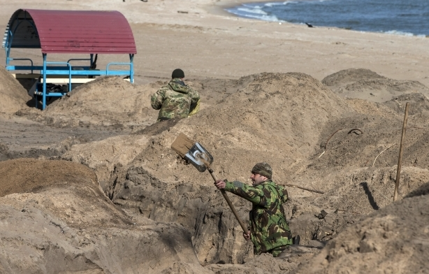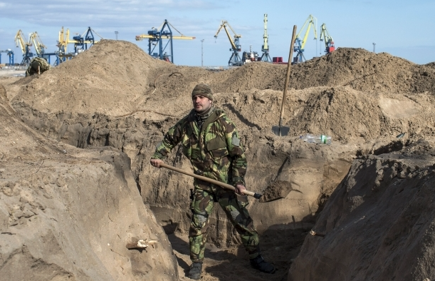 Photographs that show how Ukrainian servicemen dig trenches on the shore of the Azov Sea in Mariupol have surfaced on the web.