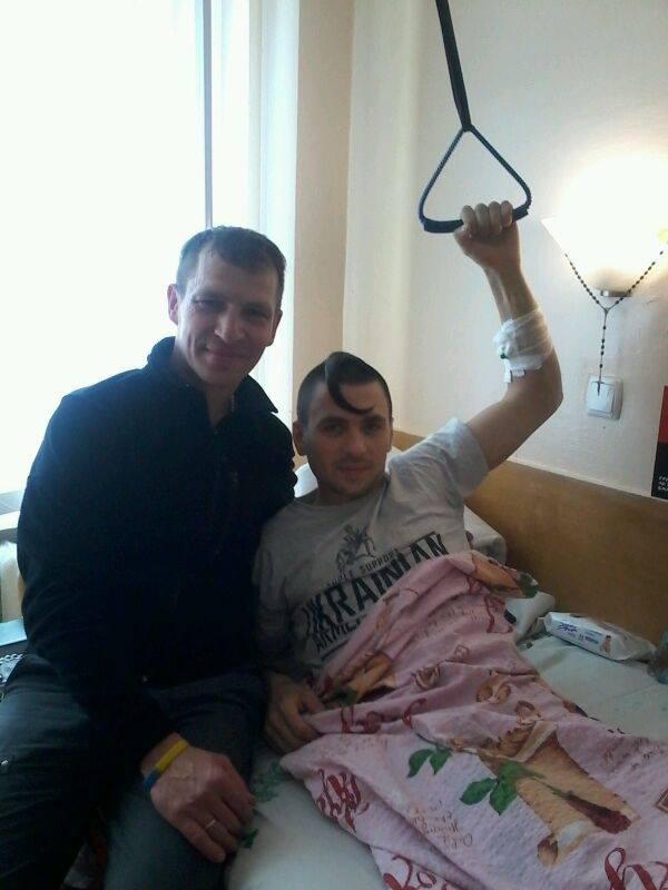 For Leonid, a very long-term rehabilitation is still ahead. I, Andrew Merezhko, am addressing friends and strangers! Please help! I did not ask [for help] during the events of Maidan, I did not ask when the war began, but I am asking now, not for myself, but for our Ukrainian guy – Leonid Moroshan, a true patriot, who went through Maidan from start to end, who fought in eastern Ukraine for over six months, with whom we stood shoulder to shoulder on Maidan during the hottest days [of fighting], and [he’s] a first-class master of woodcarving in civilian life. He is a real fighter, he has always been on the forefront; as [he was] on Maidan so [he is] in the war. During his whole time on Maidan, he received 16 stitches as a result of various injuries (hand, knee, face, neck). Every drop makes the ocean. It is YOUR help that will make a difference for him. Thank you! “- says the volunteer.