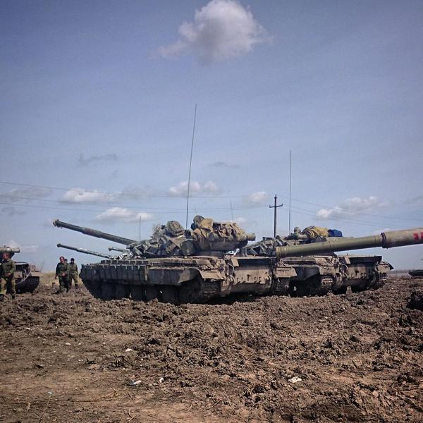 Tanks at the DNR’s training grounds. Photograph by Petr Shelomoiskiy