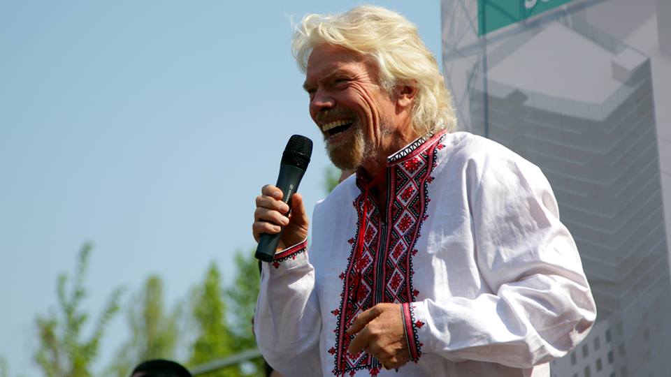 The team of the TV project “Social Life” presented Sir Richard Branson with a “vyshyvanka” [a Ukrainian traditional embroidered shirt], and he put it on! The founder of the Virgin Corporation [now Group, a conglomerate] inspired some lucky students, spoke at Forum One [business and leadership forum which took place today] and predicted economic growth in Ukraine. All the reviews about the extravagant guru can be summarized in one line: “I fell in love with him even more!”